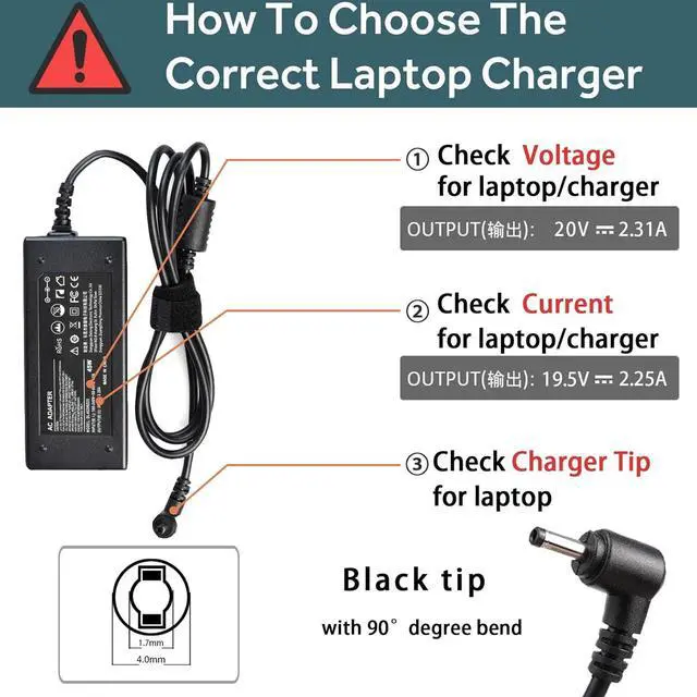 : Brand - Govvep, Input Voltage - AC 100-240V, Output Voltage - DC 20V, Output Current - 2.25A, Output Power - 45W, Connector Size - 4.0 * 1.7 mm