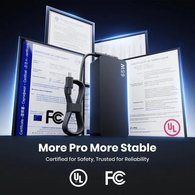 Widely Compatible- This 65W Type C Computer Charger charger is compatible with All USB-C enabled laptops and tablets. The AC Power Adapter will fast charge your device as well as the original Power Adapter.