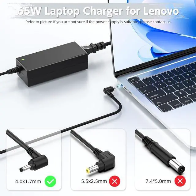 Connector Size: 4.0 x 1.7 mm. (Please Check Before Purchase) Laptop Charger for IdeaPad 1 3 5 (1-11/1-14/1-15/3-14/3-15/3-16/3-17/5-14/5-15/5-16