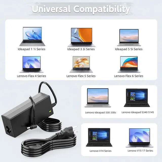 Series: 100-14IBY 100-14IBD 100-15IBD 100-15IBY 100S-14IBR 110-14IBR 110-14ISK 110-14AST 110-15ISK 110S-11IBR 120S-11IAP 120S-14IAP 130-14IKB 130-15IKB 130-15AST 310-15ISK 310-15ABR 310-15IKB 320-14IKB 320-15ABR 320-15AST 320S-14IKB 320S-15IKB 330-14IKB 330-14AST 330S-14IKB 330S-14AST 510-15IKB 510-15ISK 510S-12ISK 520S-14IKB 520-15IKB 710S-13IKB 710S-13ISK etc. AC Adapter for Flex 4 5 6 14 15 IdeaPad S340 L340 S540 S150 S145 Series: Flex 4-1470 4-1435 4-1480 4-1570 4-1580 4-1130; Flex 5-1470 5-1570 5-14ALC7 5-14ABR8 5-14IRU8 5-14ITL05 5-14IIL05; Flex 6-11IGM 6-14IKB 6-14ARR; S340-15IWL S340-14IWL S340-14API S340-14IIL S340-15IIL S340-15API L340-15IWL Touch L340-17IWL L340-15 L340-17 S150-14AST S540-14API S540-15IWL S540-14IWL S540-14IML S145-14IIL S145-15IIL S145-15IKB S145-14IKB S145-14IGM S145-15IGM S540-14IWL etc.