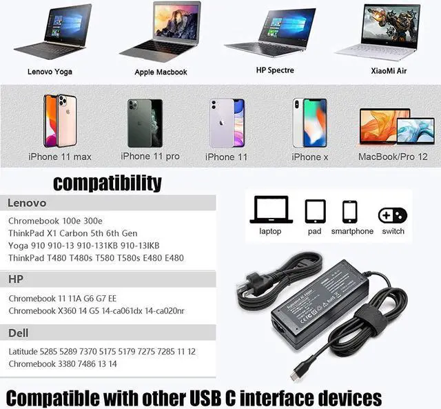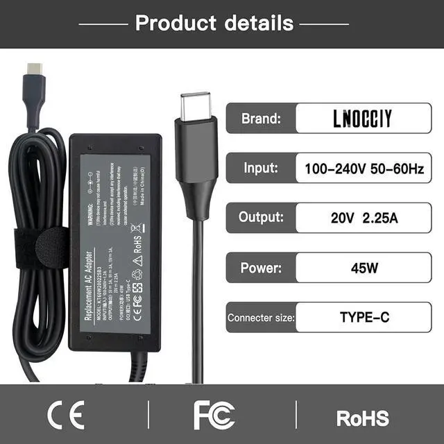 Compatible Models: 45W USB C Chromebook Charger for Chromebook 100e 300e 500e C330 S330 N23 Yoga A485 T490S T590 C930 C940 C740 S730 720 730 730-13IKB 730S 910 920 720-12IKB 720S-13IKB 730-13IKB 910-13IKB 920-13IKB C930-13IKB S730-13IWL ThinkPad X1 Carbon T480 T480s T580 T580s X390 P52S A275 A285 A475 A485 T470s T480s T580 T490 E480 E580 E485 E585 E490 E590 L480 X380 L380 L390 L480 L490 L580 L590 IdeaPad ChargerCompatible Models: 45W USB C Chromebook Charger for Chromebook 3100 2-in-1 P30T P30T001 P28T P29T P29T001 3380 3400 7486 2-in-1 5190 2-in-1 P28T P28T002 3400 P101G P101G001 7486 2-in-1 Chromebook Spin 311 315 CP311 CP315 CB311 CB315 11 13 15 R13 713 714 715 C721 C732 C733 C933 Power Cord Chromebook (Flip): C423NA-DH02 C204MA C213SA C213NA C214MA C223NA C302CA C403NA C423NA C425TA C434TA C523NA C204 C213 C214 C223 C302 C403 C423 C425 C434 C523Guarantee: 24 x 7 E-mail Support 30 Days Free trial 12 Months warran. return windows will close after one month dont worry about it you can click on seller store on right corner ask a question. Any problem please feel free to contact us. We are happy to help you!