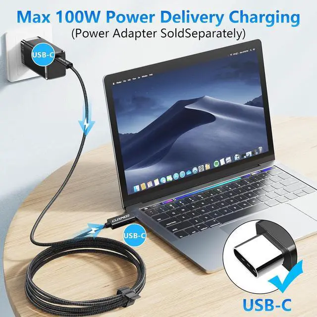 4K 60Hz USB Type C video cable connect your USB-C MacBook iPad Pro smartphone etc directly to a TV or monitor enjoy the UHD Audiovisual feat on a larger screen. USB 3.2 Gen 2 data syncing cable 10Gbps high speed enable to transmit a 10GB file within 1 minute. 100W charger cord built-in Emark smart chip makes this cable safe enough to allow max 5A current and 100W power pass through especially fit for charging MacBook Pro 16-inch which requires 96W power. (Power adapter sold separately) This USB C video&audio power and data all in one cable final shape with OD 4.5 mm.
