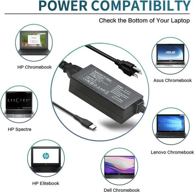 • Chromebook Charger 45W USB C Laptop Charger for HP Chromebook X360 14 14-ca051wm 14-ca052wm 14-ca061dx 14-ca043cl Chromebook Chrager USB C