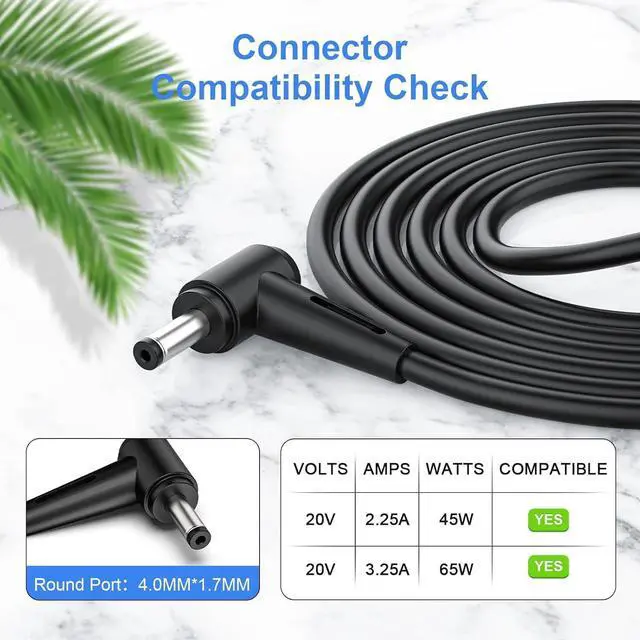 Power Adapter]: Brand new 65W wall charger output: 20V 3.25A also compatible with 45W 20V 2.25A;