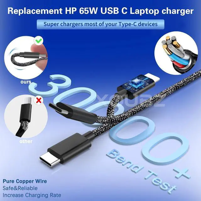 Connector Tip: Type-C USB-C65W USB C charger compatible with hp Envy X360 Envy X2 12-E000 13-G 000:12 -e011nr 12-e068ms 12-e091ms 12-g018nr; Elitebook x360 1020 G2 1030 G2 1030 G3 1030 G4 1030 G5 1030 G6 1030 G7 1030 G8 1040 G4 1040 G5 1040 G6 1040 G7 1040 G8 1040 G9; EliteBook 735 G6 735 G5 755 G5 840 G6 840r G4 850 G6 850 G5;. Elite x360 x2; Probook 640 G4 G5; Pro x2 612 G2; Pro Tablet 608 G165W Type C Spectre x360 charger Replacement for HP Spectre x360 14 2-in-1 14-ea0035TU 14-ef2041TU 14-ef2040TU 14-ef0023TU Spectre X2 X360 13