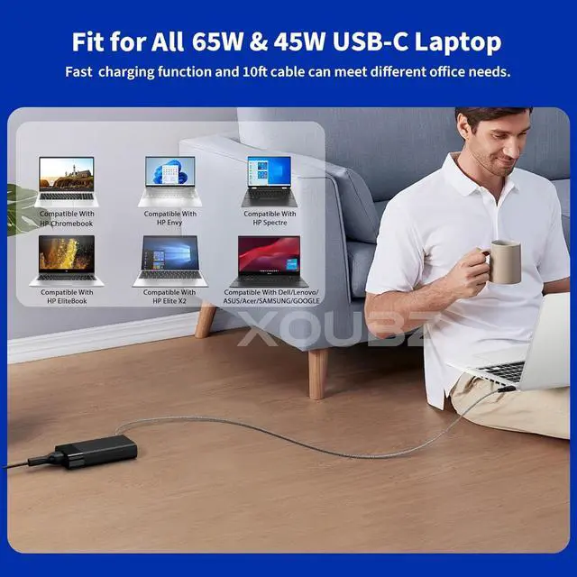 Series: 12-A000 12-AB000 13-C 000:12 -a001tu 12-a001cy 12-a001dx 12-a008nr 12-a009nr 12-ab010nr 12-c012dx 12-c052nr 12-c053nr 13-AC000 13-AE000 13-AF000 13-ac023dx 13-ac033dx 13-ac013dx 13-ac063dx 13-ae010ca 13-ae011dx 13-ae012dx 13-ae013dx; Spectre X2 X36065W Laptop Charger USB C Compatible With HP Chromebook X360 14 11 12 Series; Elite X2 Series Pavilion X2 Series Envy x360 Series65W Type C Lapopt