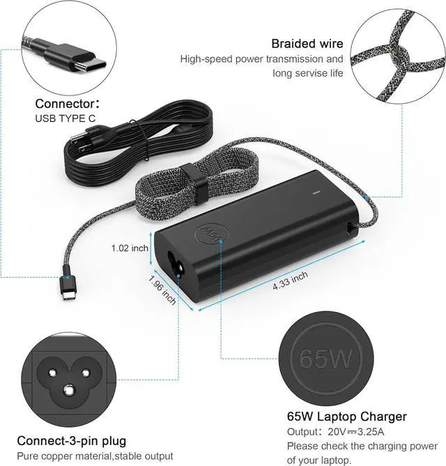 Charger)Compatible Model: Chromebook 11 3000 3110Chromebook 11 3000 3110 2-in-1Chromebook 11 3100Chromebook 11 3100 2-In-1Chromebook 11 5190Chromebook 11 5190 2-In-1Chromebook 14 3400 XPS 13 9360 XPS 13 9365 2in1 XPS 13 9370 XPS 13 9380 Precision 3480 3560 3570 3580 and moreCompatible