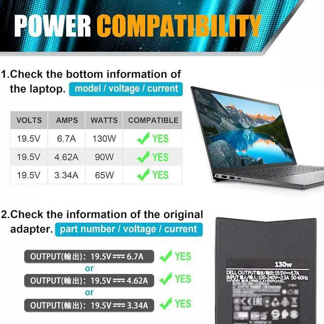size: 7.4 mm* 5.0 mm.?? Compatible with Precision M20 M60 M70 M90 M2400 M4400 M4500 M6300 Vostro 500 1000 1200 1400 1500 2510 3700 3750 A840 XPS M1210 M1330 M140 M1530 M1710 14 (L401X) 15 (L501X) 15 (L502x) 17 (L701X) L702X M170 |?? Compatible with Inspiron 300m 500m 510m 600m 630m 640m 700m 710m 6000 6000D 6400 8500 8600 9300 1150 5150 5160 1318 E1405 E1505 1501 1420 1520 1521 1525 1720 1721/ 15R (N5110) 17R (N7110) M5110 | Latitude E6400 X300 D400 D410 D420 D430 D500 D505 D510 D520 D530 D531 D600 D610 D620 D630 D631 D800 D810 D830 D831 Latitude Pro2x Pro3x charger g3 3579 charger.?? Compatible with