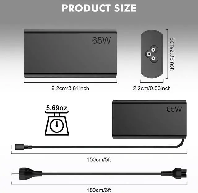 Ultra-Slim & Travel-Ready: 40% smaller than original laptop chargers. A black premium finish perfect for home office or global travel (100-240V input).