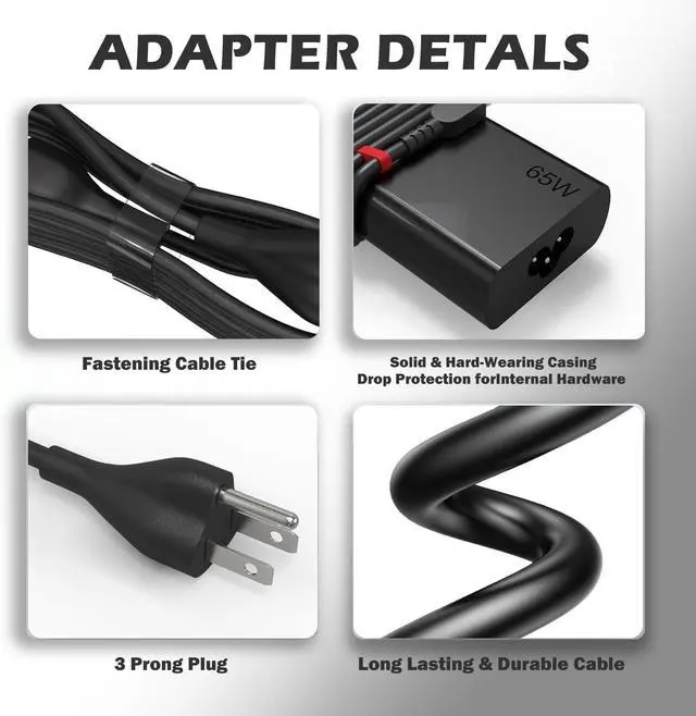 Universal Compatibility: This 65W USB C laptop charger is engineered for Thinkpad (T14/T15/T16/X1 Carbon Gen 12/11) Yoga (7i/9i/C940/S730) Chromebook (500e/C340/S340) ThinkBook and IdeaPad series. Replaces ADLX65YLC2A ADLX65YCC3A and 12+ other OEM models.