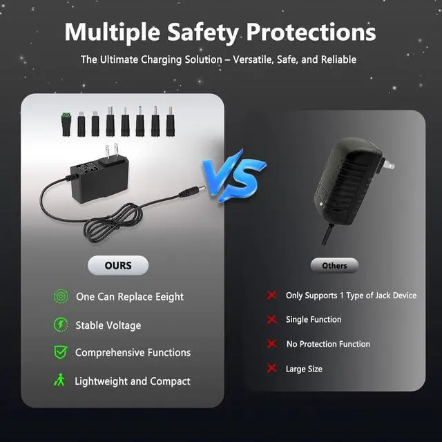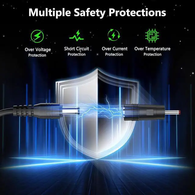 Multiple Protections: With over-current protection to prevent damage caused by over-current over-voltage protection to ensure stable output over-temperature protection to avoid overheating risks. In addition it also includes short-circuit protection which immediately cuts off the power supply in case of failure to prevent voltage spikes.