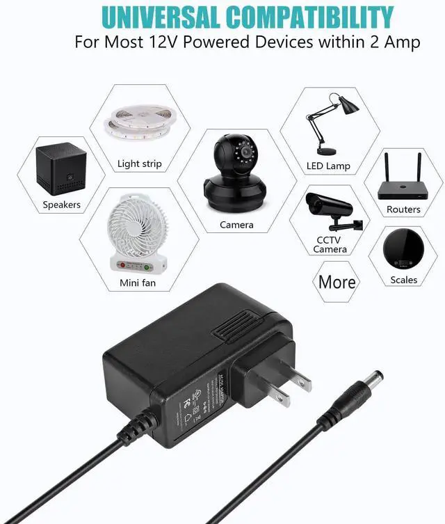 Power Supply Adapter: Power supply works for the devices which ask for a less than 12V 2A 24W power adaptor Such as 12V 2000mA 1800mA 1600mA 1500mA 1300mA 1200mA 1100mA 12V 2A 1.8A 1.6A 1.5A 1.3A 1.2A 1.1A transformer chargerPower