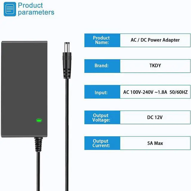 DC POWER ADAPTER COMPATIBLE WITH: ] Fit for dc in 12V 5A Aoc Sceptre HP LCD Monitor 12Vdc 5050 3528 LED Strip Light LED Driver dc12V 5A 4A 3A Lorex Swann CCTV Security Cameras 12VDC Soundbar Speaker 12 Vdc 3D Printer 12Volt Record Player and more. [12V
