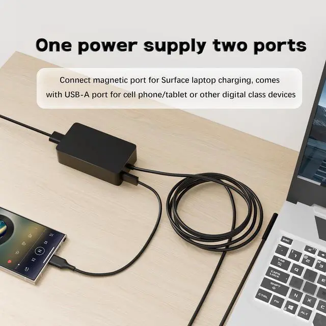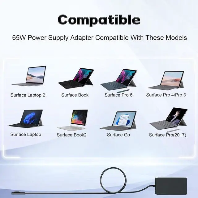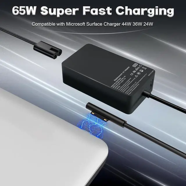 USB Port: 5V-1A 5W; And also compatible with Surface Charger 44W 36W 24W. Compatible with Laptop Model Surface Pro 10 Surface Pro 9 Surface Pro 8 Surface Pro 7/7+ Surface Pro 6 Surface Pro 5 Surface Pro 4 Surface Pro 3 Surface Pro X. Compatible with Surface Laptop ModelSurface Book3/2/1 Surface Go 3/2/1 Surface Laptop Studio i5; And model 1706 1866 1824 1796 1769 1724 1625 1631 1735 1736 1943 1867 1798 etc. Faster 65W Surface Pro Charger quickly charge your Surface come with the USB port allows you to charge other devices such as your phone at the same time without worrying about missing important information on your phone. [ OUR GUARANTEE ] As a professional Notebook power supplier Our products are in compliance with Top Industry Standards. Including Numerous Safety Mechanisms and Protection Against Short Circuiting Overvoltage Overcurrent and Internal Overheating. If there are any quality issues with the product within 12 months please don't hesitate to contact us for after-sales service