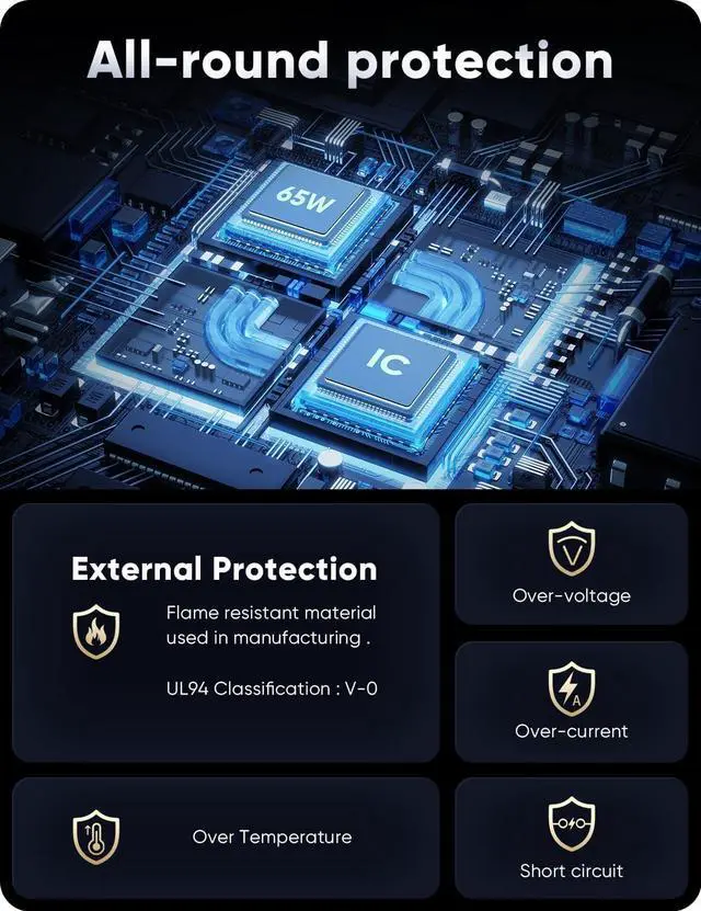 The white LED indicator conveniently displays the charging status at a glance. What You Get1 x 65W power adapter 1 x power supply cord 1 x Exquisite packaging our worry-free 18-month warranty and friendly customer service.