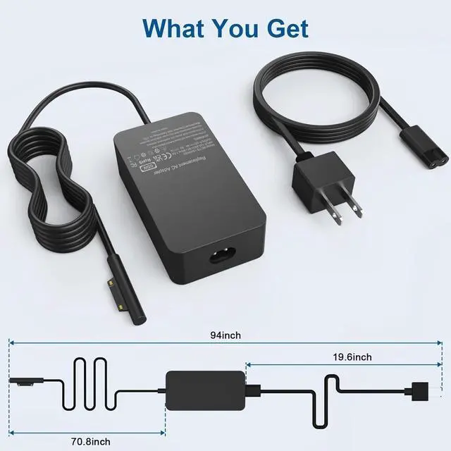 Connector: Built with original quality magnetic connector with indicator light easy to connect with your laptop without fall off. The charging cable is made of thicker copper wire to support max 65W power. Tested with over 20000+ times bend to provide 4 times longer lifespan and the super-long cable lets you charge and work anywhereWhat You Get1x 65W Surface Pro Charger Power Adapter We have always been committed to provide products of superior quality at unbeatable prices if you have any questions about the items please feel free to contact our customer service team we will reply you within 24 hours