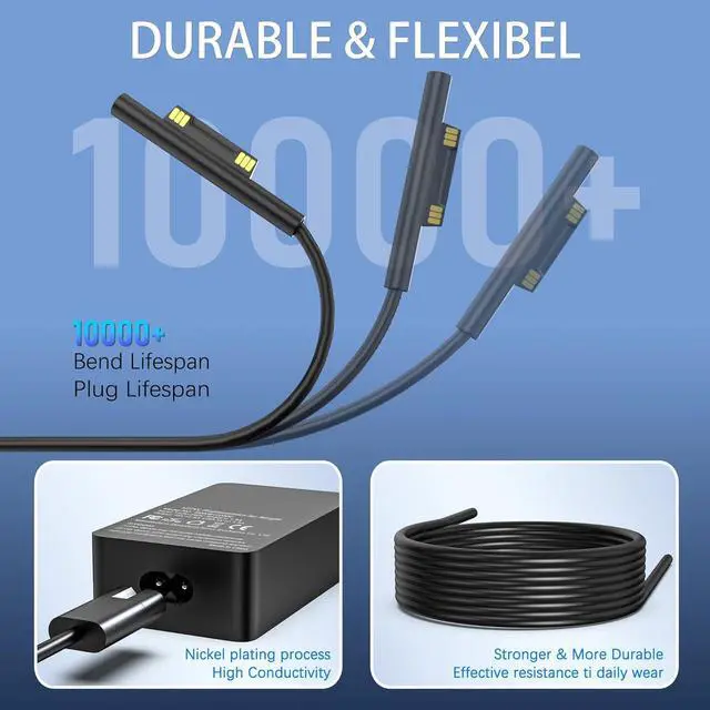 USB Port: 5V- 1.5A USB port can charge your phoneYBRUZRUB 127W Surface charger Compatible with Surface Book 3 Surface Book 2 Surface Book 1; Surface Laptop Studio 2 1; Surface Pro 10 Surface Pro 9 Surface Pro 8 Surface Pro 7+ Surface Pro 7 Surface Pro 6 Surface Pro 5 Surface Pro 4 Surface Pro 3 Surface Pro X; Surface Go 3 Surface Go 2 Surface Go 1YBRUZRUB Surface Pro charger Compatible with surface model 1796 1932 1724 1832 1798 1866 and so onThe surface Book charger has multiple built-in protection measures to protect your device from damage caused by short circuits overcurrent overheating and overvoltage ensuring the safety of the device1×Surface charger 127w 1×AC Cord. If you have any questions please contact us