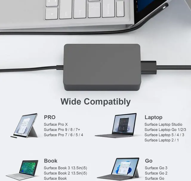 Device Compatibility: Compatible with Surface Book 1/2/3 Surface Laptop 1 Surface Laptop 2 Surface Laptop 3 Laptop Studio Surface Pro 9/Pro 8/Surface Pro 7/Pro 6/Pro 5 2017/Pro 4/Pro 3 and Surface Go 1/2 Surface Pro XPower
