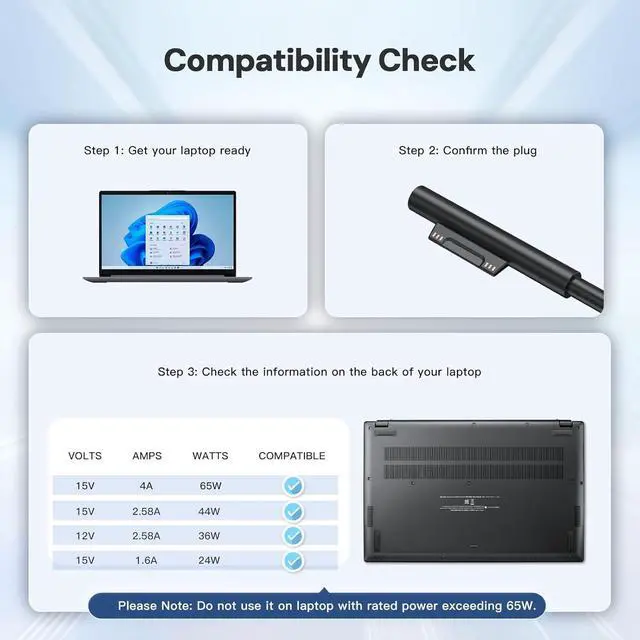 Fast Power Output: Delivers up to 65W for fast stable charging of Surface laptops; with a 5V 1A USB charging portWide
