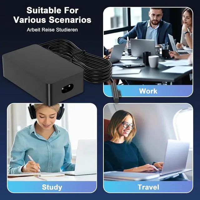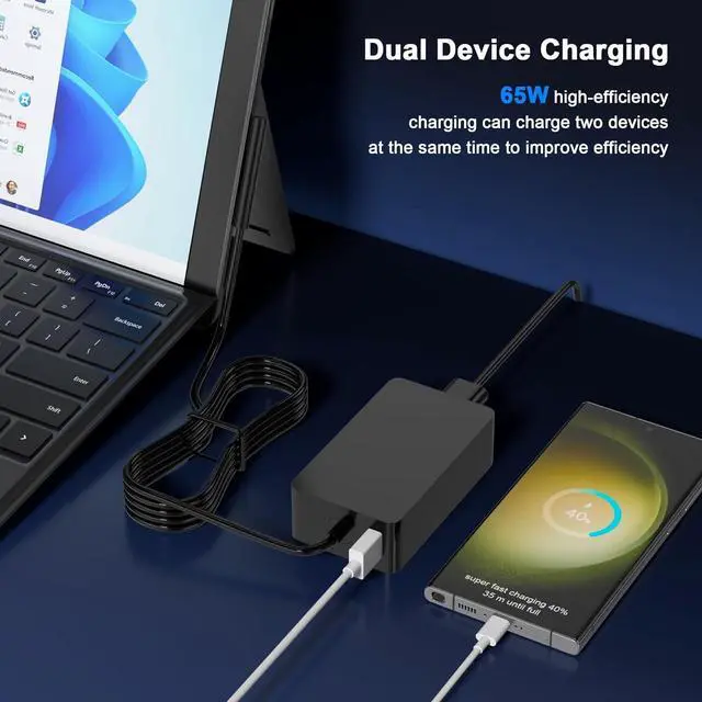 Sensitive Linker: High sensitive support plug and play need not aim. Higher charging performance than 44W 39W 36W 24W laptop / tablet charger. Full charge Surface Pro 9 in only 1.5 h. The Gnusmasph compatible with surface laptop charger also supports output power of 65W 44W 36W and 24WSafe