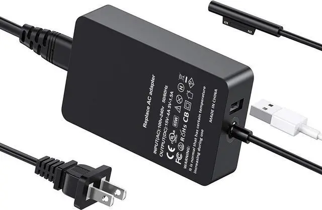 Charger for Surface: Full charge Surface Pro 9 in only 1.5 h perfect match surface model 1706 1866 1796 1724 1625 1867 1735 1800 and so on higher charging performance than 44W 39W 36W 24W laptop / tablet charger.