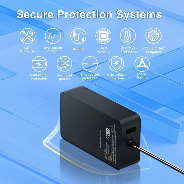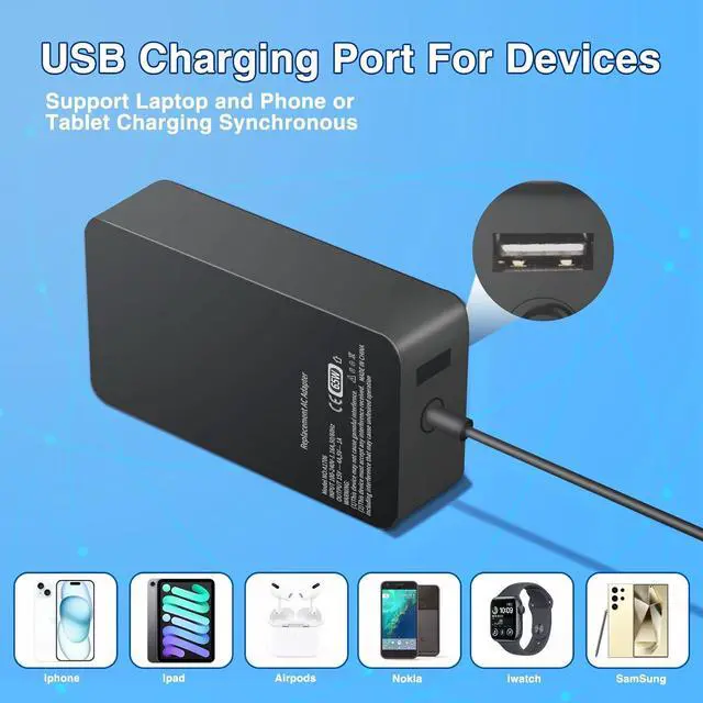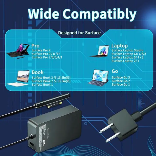 Universal Compatibility: Perfectly compatible with Surface Pro 10 9 8 7+ 7 6 5 4 3 X Surface Studio 1 i5 Windows Surface Laptop 6 5 4 3 2 1 Surface Book 3 2 1 Surface Go 3 2 1 match surface model 1706 1866 1796 1724 1625 1867 1735 1800 etcSupports 44W 36W 24W Surface laptop/ Surface tablet chargerMultiple