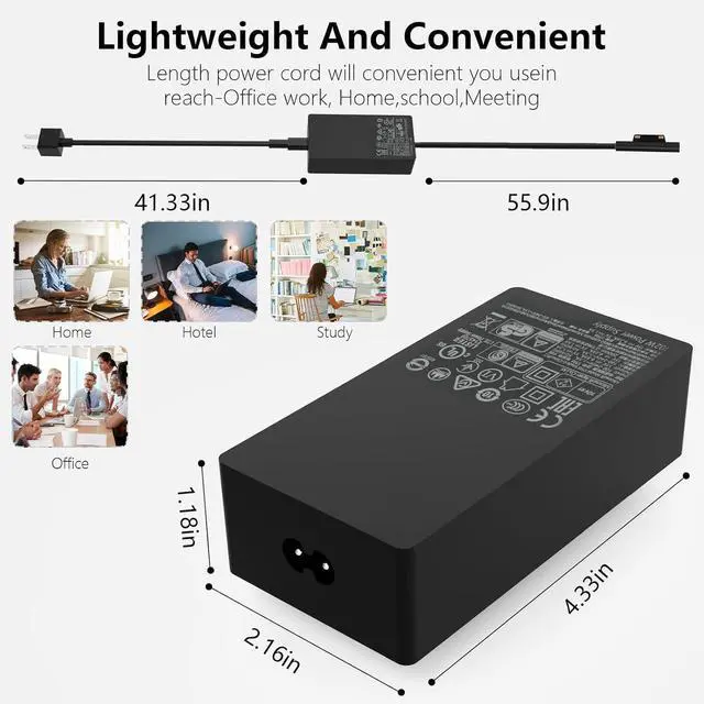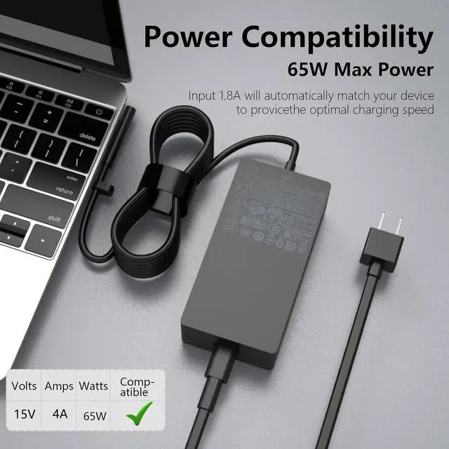 Charger for Surface: Full charge Surface Pro 8 in only 1.5 h perfect match surface model 1706 1866 1796 1724 1625 1867 1735 1800 and so on higher charging performance than 44W 39W 36W 24W laptop / tablet chargerWidely compatibility: Compatible with Surface Pro 10 9 8 7+ 7 6 5 4 3 X Surface Studio 1 i5 Windows Surface 6 5 4 3 2 1 LaptopDependable