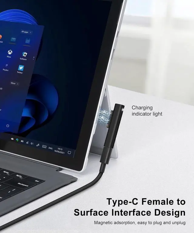 Wide CompatibilityCompatible with Surface Pro 9/8/7/6/5/4 Surface Laptop 3/2/1 Surface Book Surface Laptop 5 Surface Laptop 4 Surface Go and other devices. Its magnetic interface with charging indicator light automatically adsorbed when inserted not easy to fall the indicator light is on when powered onWarranty PeriodAll AIYEEN products are guaranteed for 2-year. If you have any question please feel free to contact us