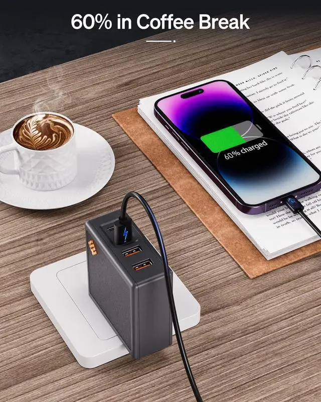 ???????????????????????????????: Our 100W 2C2A charger paired with a 100W USB C cable not only offers you fast charging but also saves your wallet. This cost-effective combination will provide your electronic devices with an exceptional charging experience keeping you powered up at all times. Don't miss out on this opportunity; upgrade your charging solution today for convenient and efficient charging experiences.??????????????????????????????????????????????? Up to 100W fast charging Safeguard your battery.??????????????????????????: No reset when plugging or unplugging with unique technology.?????????????????????????????????????????????????????: Chargeing your all electronic devices simultaneously. Only need one charger for travel and business.????????????????????????????: Say goodbye to your old chargers. SlimQ is 55% smaller than traditional chargers. However because of the GaN Latest technology it's perfomence is better than old charger.???????? -????????????????????????????: Up to 100W charging power - Quickly relieves your low-battery anxiety.??????????????????????????????????????????: Business design provides unique and better touch; Foldable design saves you luggage space.????????????????????????????????????: Work for almost any electronic devices such as MacBook Series XPS HP Elite YOGA Google Pixelbook Chromebook iPhone iPad etc.?????????????????????????????????????????????????: Unique intelligent temperature control to reduce charging heat and safeguard you.