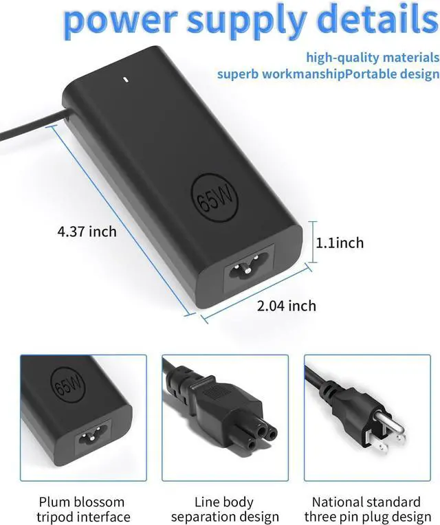 Output: 5V/3A 9V/3A 12V/3A 15V/3A 20V/ 3.25A. Compatible with Latitude 5289 5290 5320 5400 7275 7320 7520 5190 3390 3300 7200 7310 7285 7520 7370 7380 7390 9410 9420 5175 7275 7212 3120 XPS 12 9250 XPS 13 9300 9310 9333 9305 9365 2in1 Chromebook 3100 3300 3380 3400 3500 5190 5300 5400 7200 7300 7486 P28T P29T P30T P86F P99G P100G P101G P110G P111G P28T002 P29T001 P30T001 P101G001 2-in-1. Replacement Charger