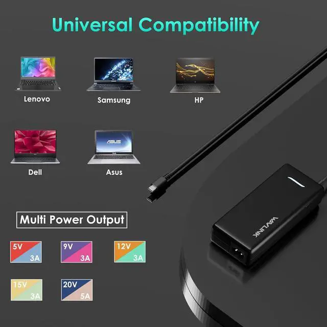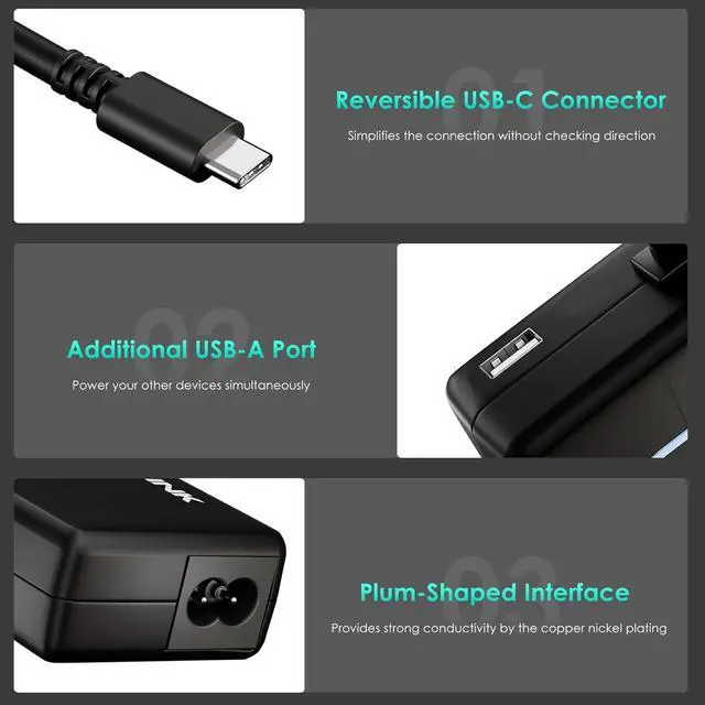 Certified by RoHS, CE & FCC, the charger safeguards your devices against current overload, overvoltage, short circuit and overheating. Manufactured with the highest quality materials and undergoes rigorous performance testing to keep your computer safe and fully charged with. Just rest assured of delegating the charging work to this reliable power adapter.