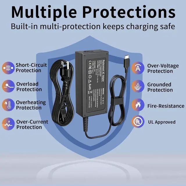 Chromebook Charger USB - C Power Adapter offers fast and efficient charging, whether you' re at home or on the go! Keep one in the office, one at home, and another in your carrying case so that you always have power. It is OS - independent and compatible with Lenovo laptop Computer that require a 45W USB - C Laptop charger.