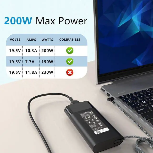 Compatible With HP 200w laptop charger Compatible with HP 15 17 15 15t 15u 17 17t 15-ce000 15-dc000 17-an000 15-cx0000, Pavilion Gaming 15 16 17 Series, OMEN 15 15t, OMEN 17 17t, Envy 15 2020