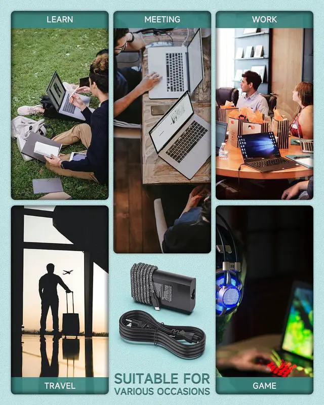 Output: 5V 3A /9V 3A /12V 5A /15V 4.33A /20V 3.25A, Max power 65W (compatible with 45W);