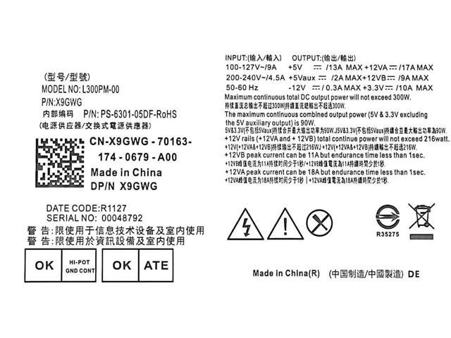 300W L300PM-00 New Power Supply Replacement for dell Optiplex 3010 7010 9010 Inspiron 3847 570 560 300 Precision T1500 T6100 T1650 Vostro 400 PS-6301-05DF X9GWG Mini Towers MT Systems