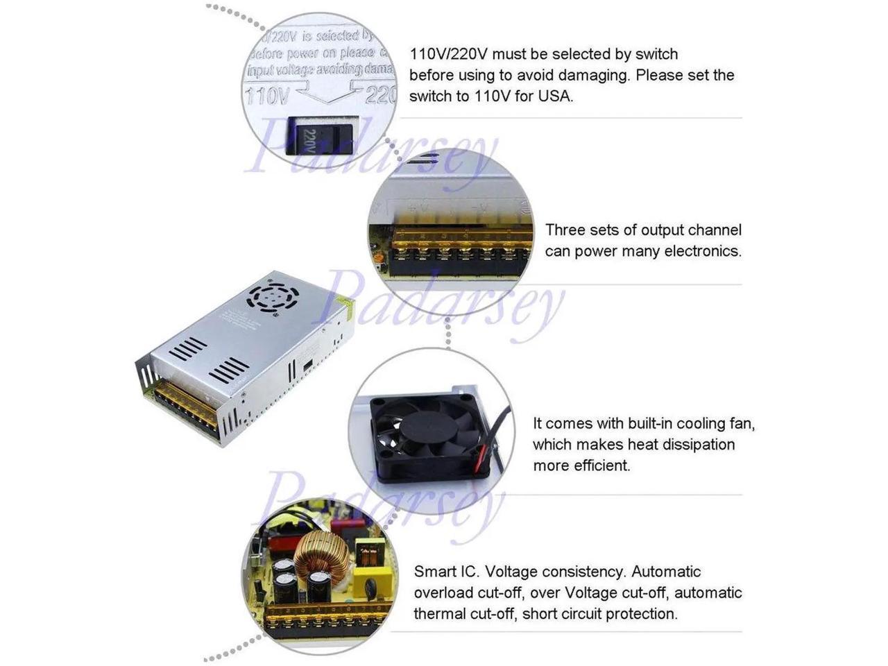 DC 24V 15A 360W Power Supply Universal Regulated Switching Transformer Adapter Driver 110V/220V AC Input for LED Strip CCTV Radio Computer Project