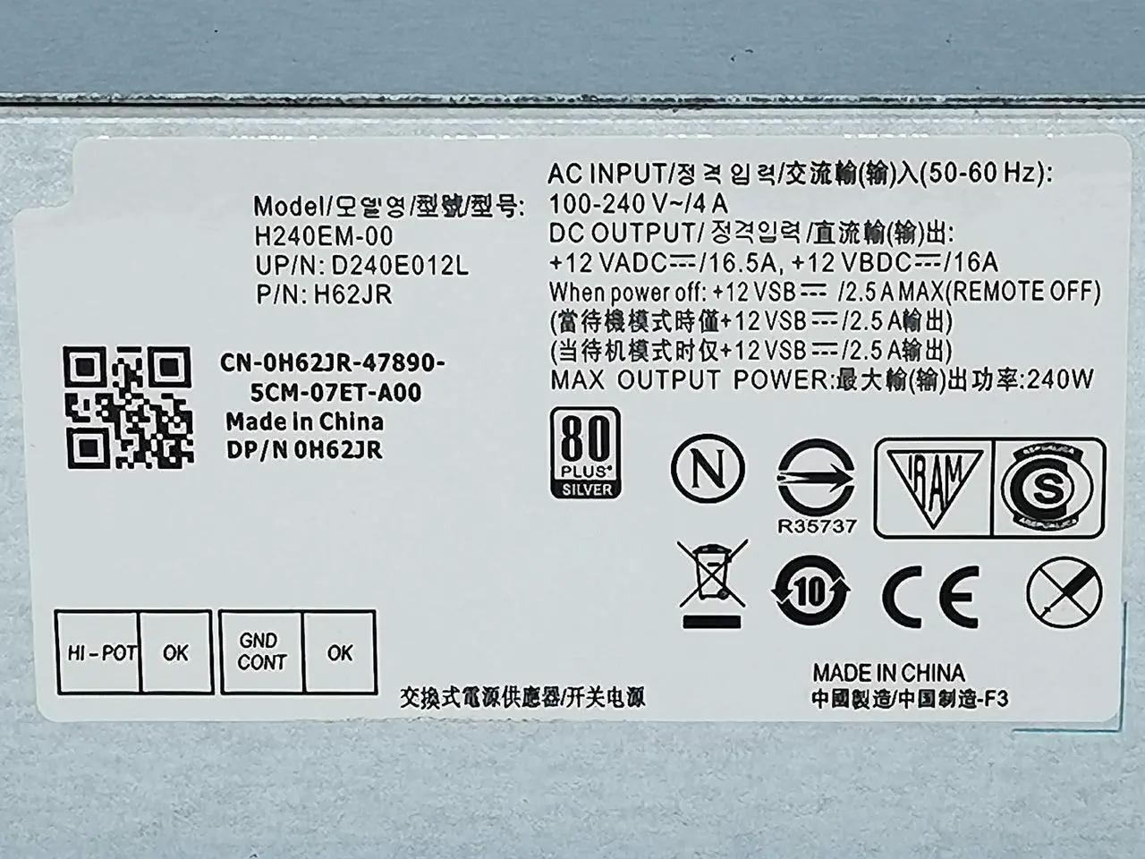 240W Power Supply for Dell Optiplex 3040 3046 3250 3650 3656 5040 7040(SFF) H240EM-00 B240NM-00 AC240EM-00 L240AM-00 HU240AM-00,P/N: THRJK 4GTN5 4R1KT D7GX8 H62JR 3RK5T 6WX7D 0M1C3 J1J7