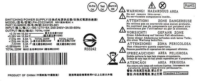 220W Power Supply Unit for HP Pavilion Slimline S5 S5-1xxx TouchSmart 310-1205la Desktop PC, P/N:633193-001 633195-001 633196-001,M/N:PCA222 PCA322 FH-ZD221MGR