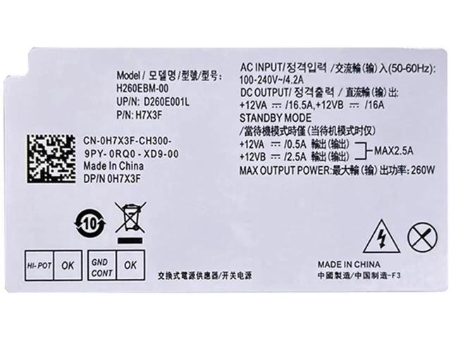 H260EBM-00 H7X3F 260W Connector:6Pin+4Pin Power Supply Replacement for dell OptiPlex 3050 3060 5050 5060 7050 7060 MT Inspiron V3668 V3669 L260EBM-00 AC260AM-00 B260EBM-00 52CKC 8X63N 3YNRJ