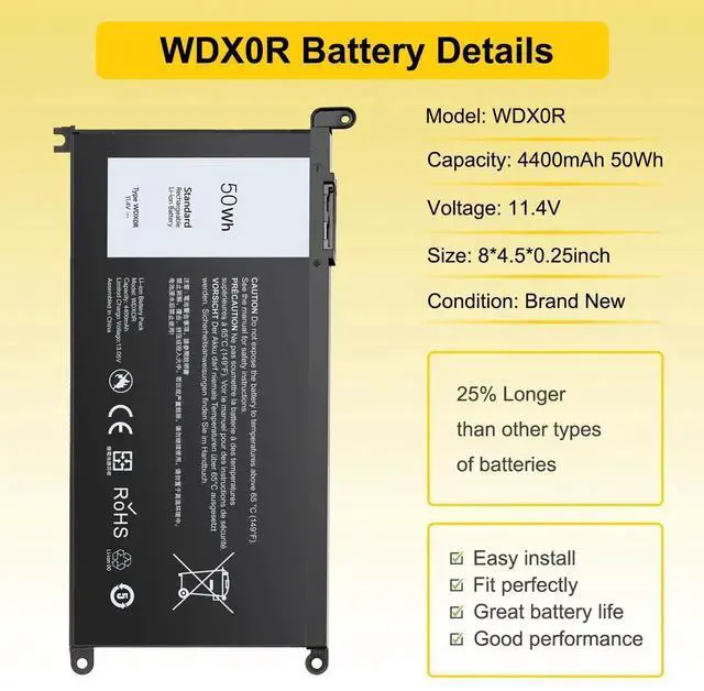 iROCCMIN 4400mAh 50Wh WDX0R Laptop Battery Replacement for Dell Inspiron 13/15/17 5000/7000 (5368 5378 7378 5568 5578 5580 5767 5770), Latitude 3180-3590, Vostro 5568 5468 Compatible WDXOR P69G 3CRH3