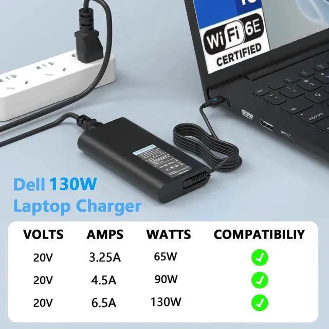 Specifications: INPUT: 100-240V 50-60Hz Output: USB C 5V,9V,15V,20V 1A,6.5A Power: Dell Type C Laptop Charger 130W ( Compatible with Dell 90W USB C ChargerDell 65W USB C Charger) (Please confirm the specifications of your Dell power adapter before ordering.)