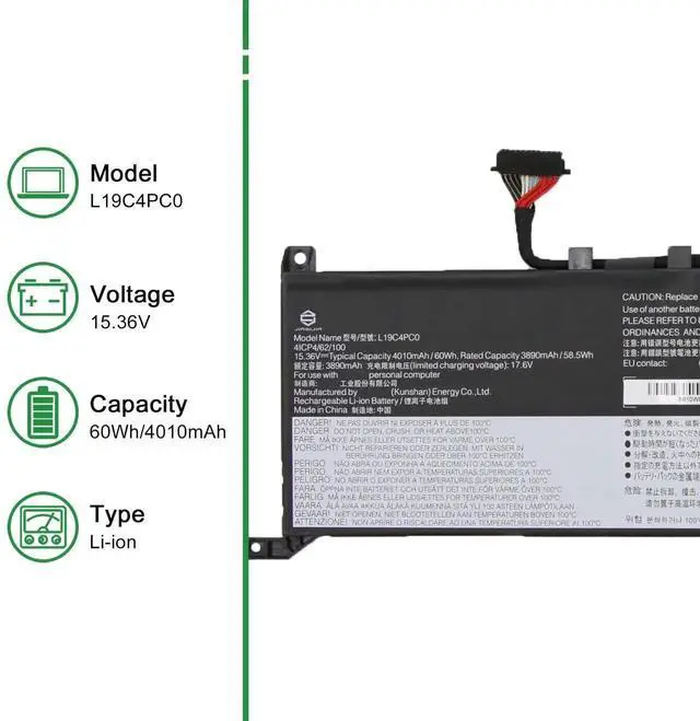 JIAZIJIA L19C4PC0 5B10W86196 SB10W86190 Laptop Battery Replacement for Lenovo Legion 5-15ARH05 5-15ARH05H 5-15IMH05 5-15IMH05H Series L19M4PC1 5B10W86192 L19C4PC1 5B10W86194 L19M4PC0 15.36V 60Wh