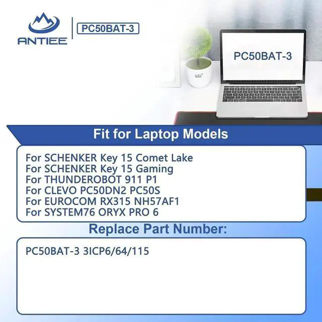 PC50BAT-3 Laptop Battery for Schenker Key 15 Comet Lake Key 15 Gaming for CLEVO PC50DN2 PC50S for SYSTEM76 Oryx PRO 6 for THUNDEROBOT 911 P1 for EUROCOM RX315 NH57AF1 Series 11.4V 73Wh 6400mAh 3-Cell