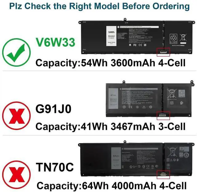 V6W33 Battery for Dell Latitude 3320 3420 3520 Inspiron 5310 5410 5415 5418 Inspiron 5410 7415 2-in-1Inspiron 3510 3511 3515 5510 5515 5518 Vostro 5310 5410 5415 5510 5515 35103515 Series Notebook