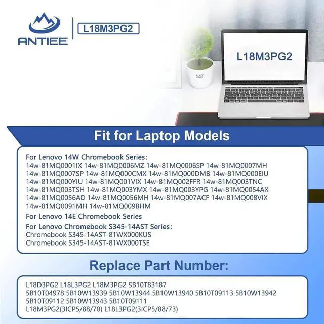 L18L3PG2 L18M3PG2 Laptop Battery Replacement for Lenovo 14E 14W Chromebook S345-14AST Series L18M3PG2 L18D3PG2 5B10T04978 5B10T04979 5B10T04980 5B10W13939 5B10W13940 11.52V 57Wh (Long Cable)