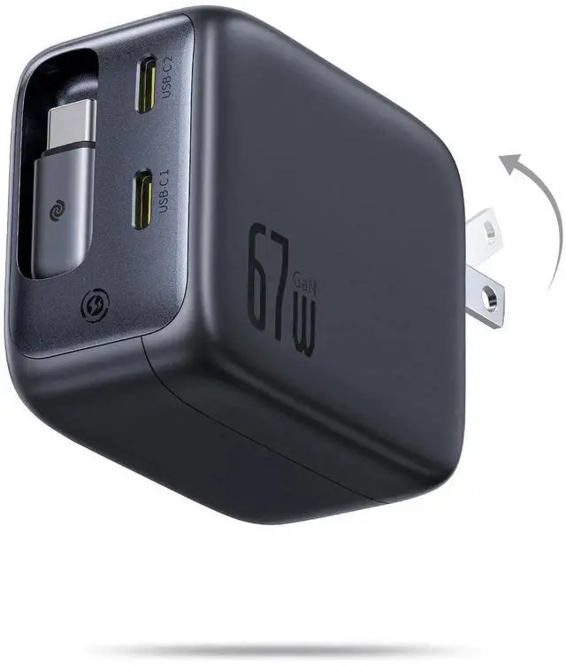 Retractable USB-C Charger: The Dual usb c charger block features a handy 32-inch Retractable USB C Cable. The handy cable will keep you ready whenever your phone or tablet needs a quick boost. It's the ideal charger to keep your travel light.