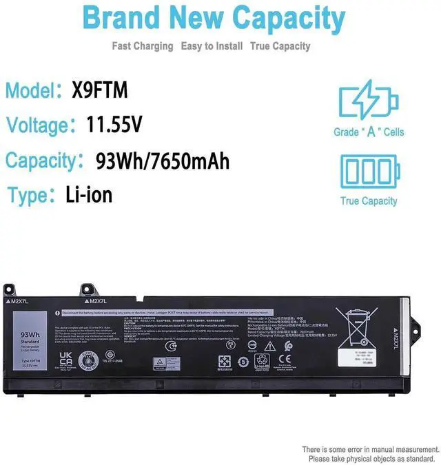 TAICROWNE 93Wh X9FTM Replacement Laptop Battery for Dell Precision 7670 7680 7770 7780 Series 45N47 5JMD8 965V4 7650mAh 11.55V