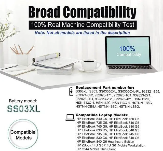 Replacement for Part Number P/NReplacement for hp elitebook 840 g5 battery,SS03XL SS03 SS03050XL SS03050XL-PL HSN-112C HSN-113C-4 HSN-I12C HSN-I13C-4 HSTNN-1B8C HSTNN-DB8J HSTNN-IB8C HSTNN-LB8G 933321-855 933321-852 932823-171 932823-1C1 932823-271 932823-2B1 932823-2C1 932823-421