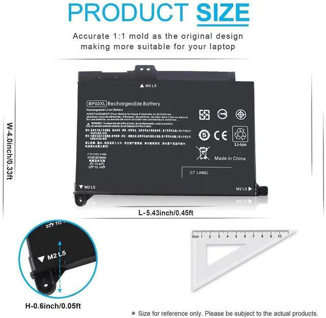 BP02XL 849909-850 Battery for HP Pavilion 15-AU000 15-AW000 Series 15-AU123CL 15-AU063CL 15-AU091NR 15-AW053NR 15-AU018WM 15-AU010WM 849569-421 849569-542 849909-855 HSTNN-UB7B HSTNN-LB7H 7.7V 41Wh