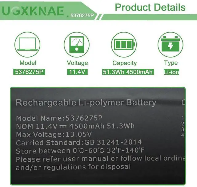 Capacity: 51.3 Wh 4500 mAh.